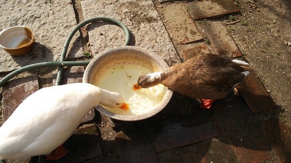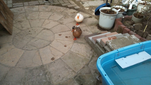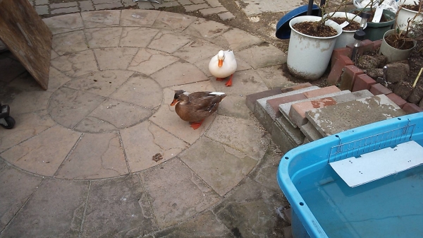 うちの庭にもネコやカラスが来ますがコールダック本人ではなくコールたちの餌狙いです。