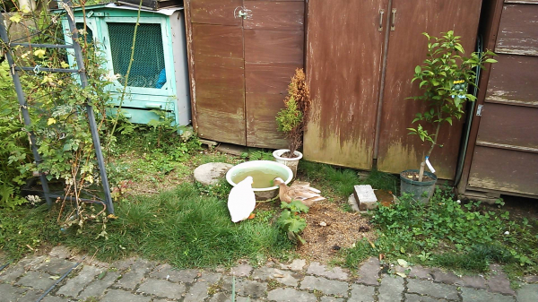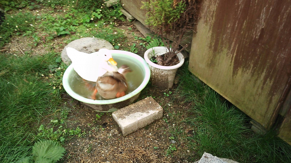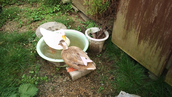 黒ちゃん、白ちゃん、仲良く水浴び嬉しそう、です。
