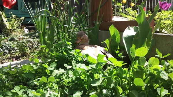 この山に流れる小川にカモの夫婦が住みついていまして、