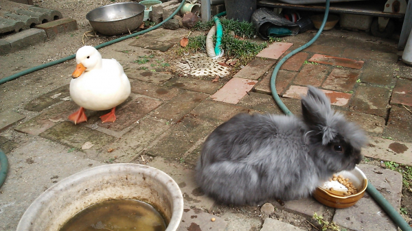 ウサギとアヒルのせいで庭の砂漠化が止まりません・・・。