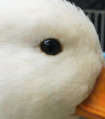 目の色はおそらく、白アヒルは灰色でそれ以外のカラーのアヒルは茶色なんじゃないかな、と思います。