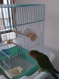 放鳥すると、コザクラインコのケージの上に乗って、見に行きます。