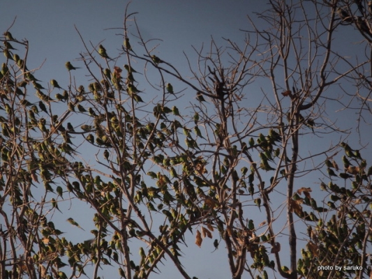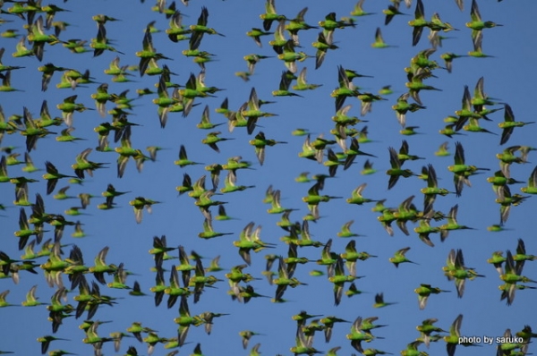 の中にオーストラリア内陸の野生セキセイインコの群れ