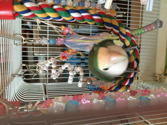 2か月のコザクラちゃんと3年前に迷子になって飛んできたセキセイちゃんと楽しく過ごしてます☆