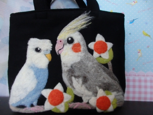 ミアさんに、鳥モデル企画の最終回で、てんちゃんニッキちゃんバッグを制作していただいたきいママです♪