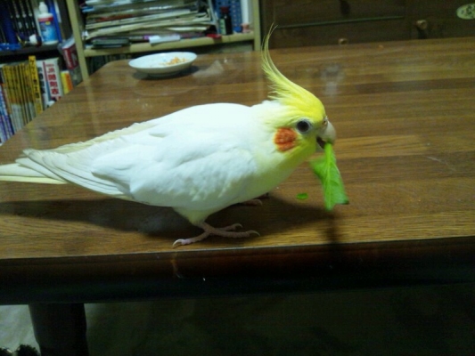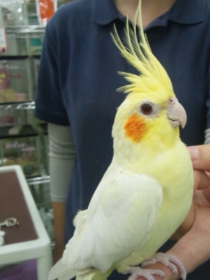 外見的特徴は冠羽が前方にカールしており尾羽が少々汚れています。また、機嫌の良い時は口笛を吹いたり、トロタン、ただいま、バイバイ、大丈夫、などのおしゃべりをします。