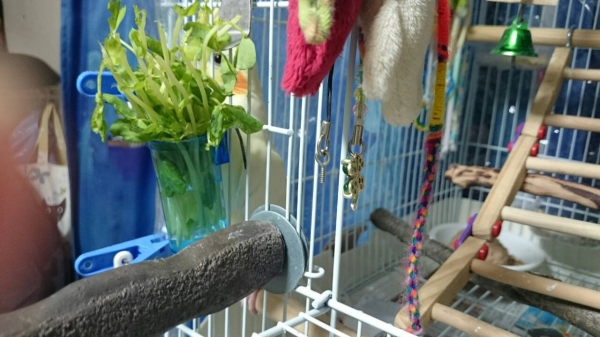 うちのねねたんは籠の周りをぐるぐる探検してみたり じゅうたんに降りて狭い所を探して入ってみたり 窓枠に飛んで行ってお外の野鳥さん達を呼び鳴きして 飛んでる姿を見て 同じように飛んだりかくれたり
