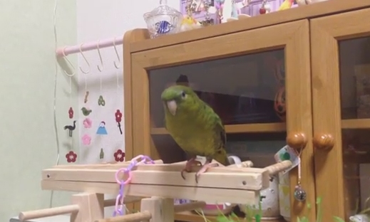 放鳥の時間が長すぎでおなかぺこぺこになっちゃうときがあるのである程度時間を決めておうちの扉をしめてごはんたべさせています(^ω^)
