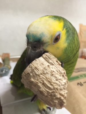 新しいかじり木だよ 裏側からも とても喜んでます。すごい顔 (笑)