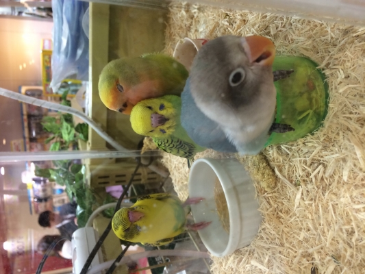 セキセイちゃん、コザクラちゃん、ボタンちゃんの雛が一緒に餌を食べてるところをみて癒されました!