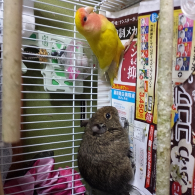 ぎなちゃんの所に、デグーのれいなちゃん。