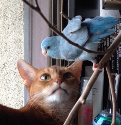 現在、マメルリハを3羽と猫1匹と暮らしています。
