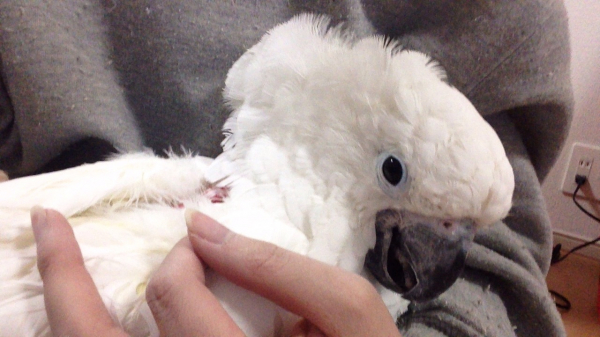 それから目を離したすきに自分から2日連続でネズミ捕りのとりもちにひっかかったりしてて、ダニにやられたり、ほんと不運続きのインコですねσ^_^