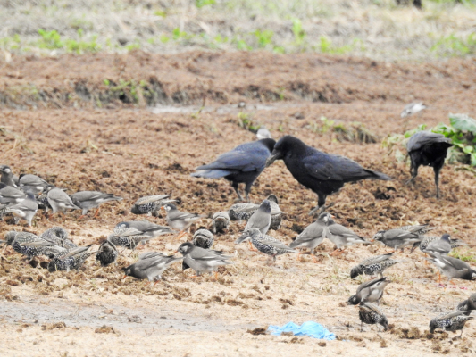 コクマルガラスを確認。200羽くらいのミヤマガラスの中に混ざっていました。パンダ(淡色型)は2羽確認できました。