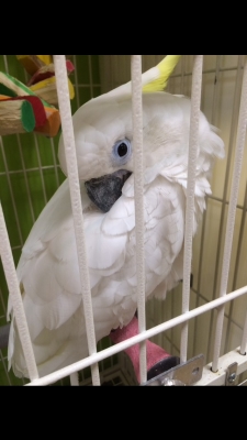 この方はオオバタンを飼われているのですが、ご家族が、ホームセンターに8年いた子をお迎えしたようです。