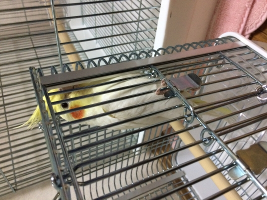 うちは外から声をかけるだけでは落ち着かないので、羽をおらないように気を付けて籠の外にだしました。