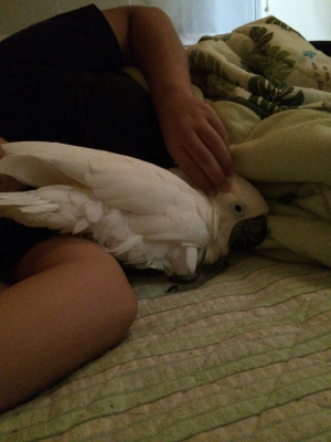 コバタンはいつも肩にいるので、なかなか抱っこ