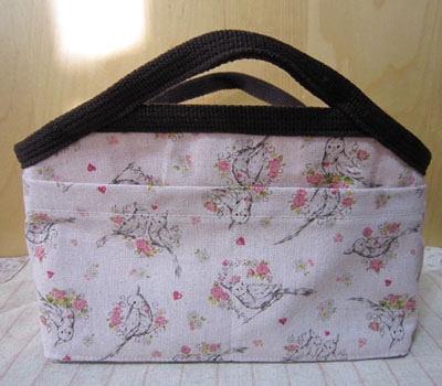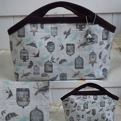 バッグインバッグ、オカメインコ3色と小鳥柄1色とランチバッグ3色、近々入荷予定。