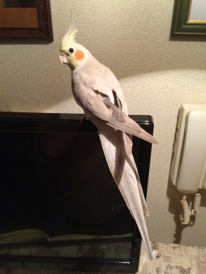 ちなみにオカメインコのポポもいるのですが、こちらは尾羽が成長を続けていて、35サイズのケージが狭苦しそうです。