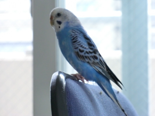 【特徴】手乗りでよく人に慣れています。名前を呼ぶと「ピッ」とお返事をします。おしゃべりはしません。 オーツ麦が大好きで、「おやつ」という言葉に反応します。人の肩によく乗ります。