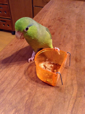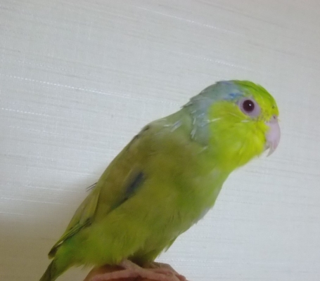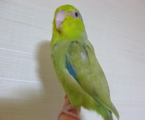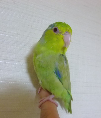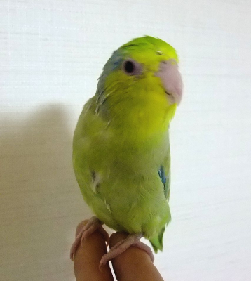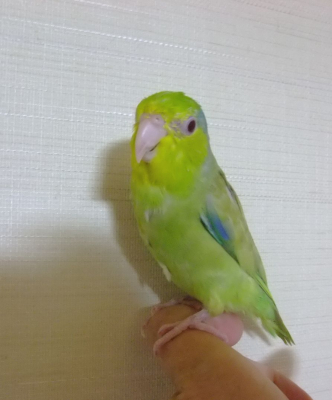 先天的な弱さがあるので、あまり飛びませんが、私の手の上が好きで、顔を近づけると、鼻をやさし〜く甘噛み?のようにしてくれます。( ^)o(^ )