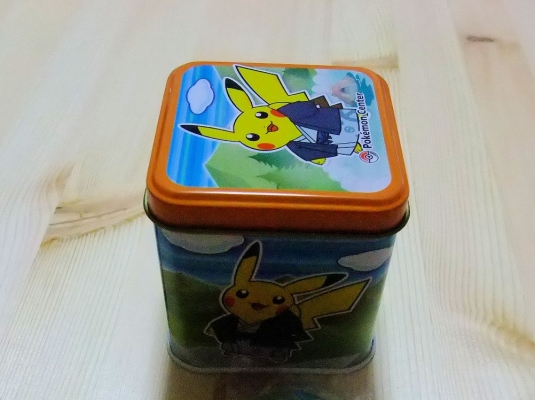 友人が、ピカチュウの缶に入ったお菓子を送ってくれました。