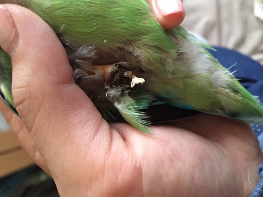 『ラブバードの特徴的な病気に「腫瘤」があり、特に翼や脚にできやすいので腫瘍を完全に取り除くために「断翼」や「断脚」が実施されることが多いとのこと。