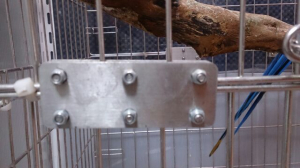2枚のプレートで挟んで固定しています プレートはこの様な長いタイプもあります モモ達のケージは大きすぎて収まらず…(笑)