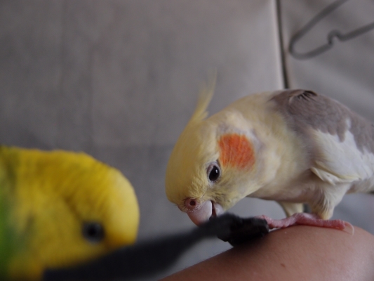 オカメインコちゃんの威嚇を尊重するように気をつけました。