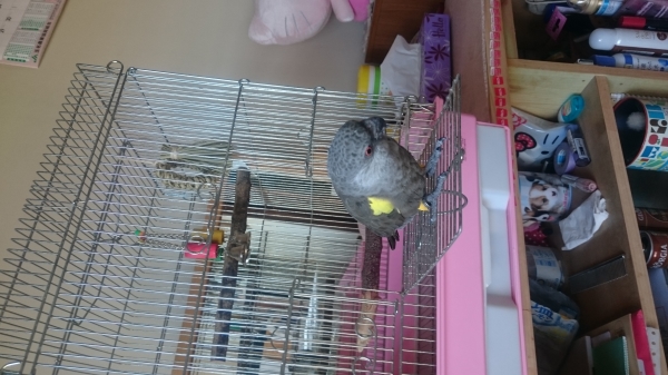 多少羽が伸びたので、なんだか嬉しそう(フローリングに着地して固まってましたが)