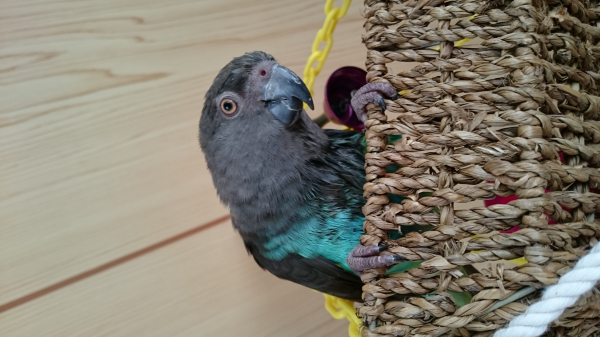 出窓から外を見たり、新しくしたゴンドラの籠を破壊したり、肩に乗って籠洗いの見てるだけお手伝いをしたりしてなんだかご機嫌になっていました