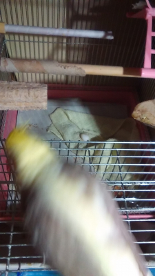 そこで、わたしが、床に置いたエサ箱と水入れを取ろうと手を突っ込むと・・・