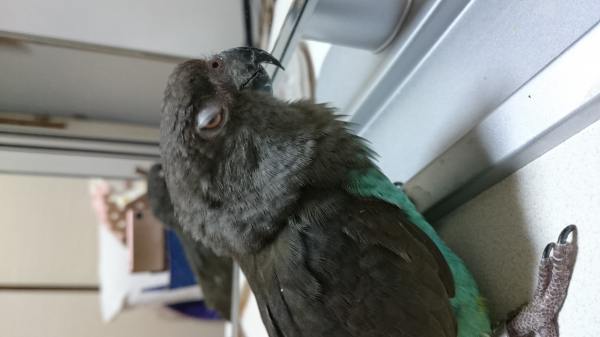 首回りに筆毛がでてきてよく羽繕いしていて、たま吉みたいに毛引きになったらどうしようとか