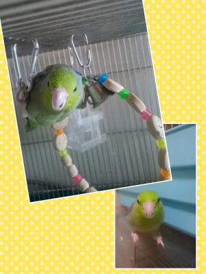 465オウム籠の底にスタンドをつけてお手製バードジムにしているかたがいましたが、創るしかないのかしら、、丁度あるし、、、