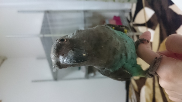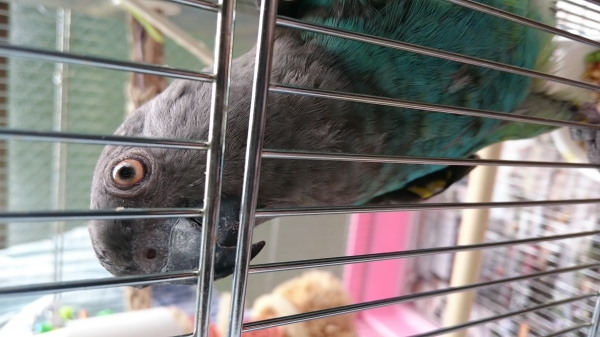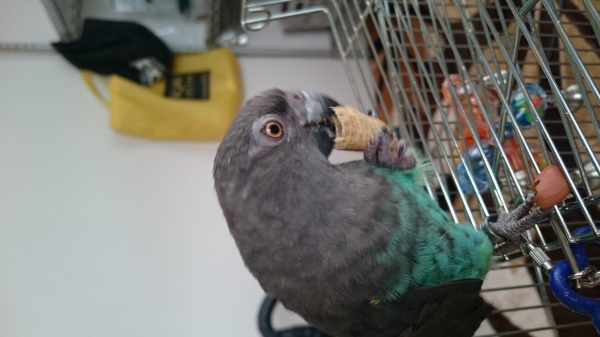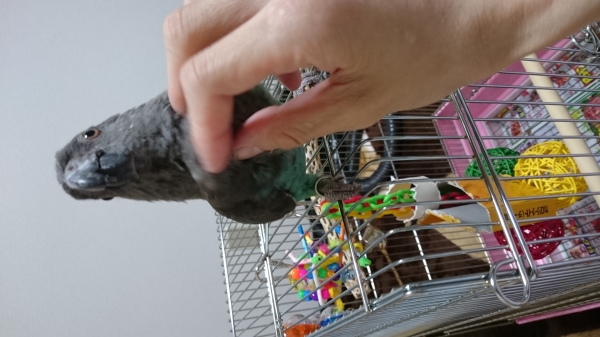 メロンは力持ちです(笑)嘴ですが空き缶もブンブン振りましたり、ペンは脚で握ったりとします♪女の子なのに、ワイルドです!