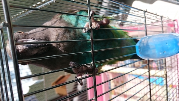 今朝○がんーんーうるさいのでみてみたら籠の扉が開いてました!