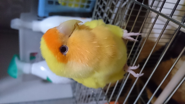 そういえば1年前は餌いれに乗っかって左足でいっぱい餌を鷲掴みして好みの粒を選んでくわえて足を開く➡残りは落ちる、、という廃棄率80パーセント位の悪癖があったけど、今はやらない