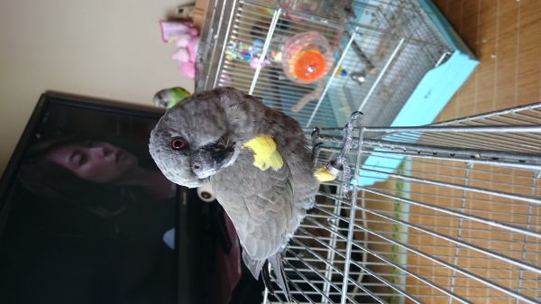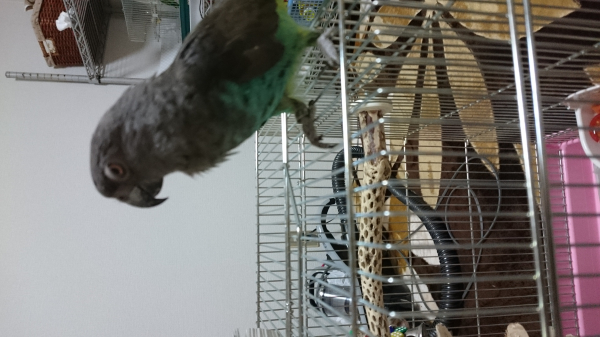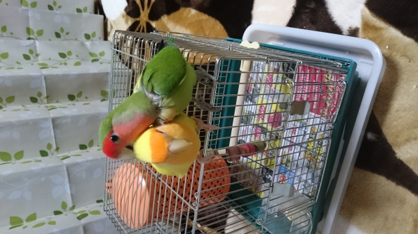 うちの子はケージの中で羽ばたいても飛べないっていうのが分かっているのでケージの中で羽ばたきませんが、広いケージで飼われている子のお迎えだとちとスペース確保が大変そうです