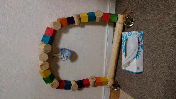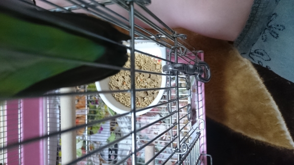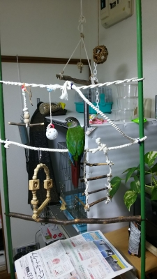 下は色々インコ用具を置いてる1m位の高さの棚みたいなやつなんですよ!