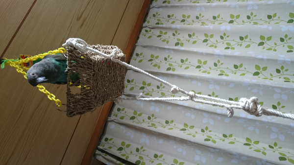 黄身の世話をしているときに○とたまは二羽で揺れるゴンドラにびびってしがみついたり、