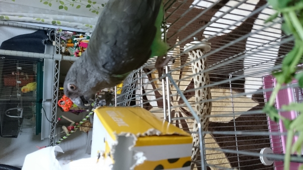 ティッシュ箱かじりはなんだか悪い顔 手ごねインコ中 とろけそう