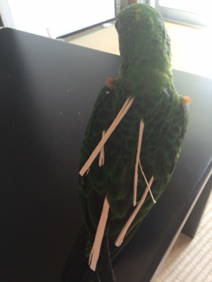 しばらく使ってなかったのですが、鳥さんが少しずつ飛ぶ様になって来たので、飛んだ時に張り付いたりして緊急着地場所になるかな?と思って出してみました。壁激突だけは避けたい(_)
