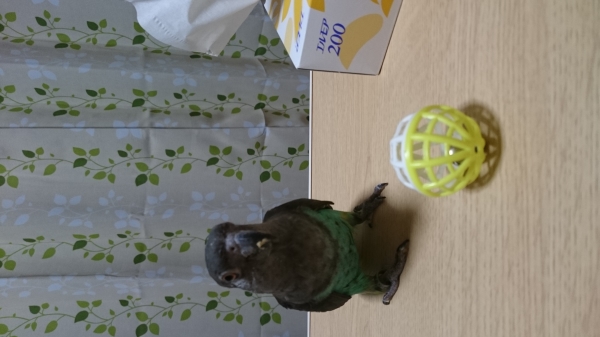 放鳥時は、おもちゃを3種類程出して横で遊んでもらっています