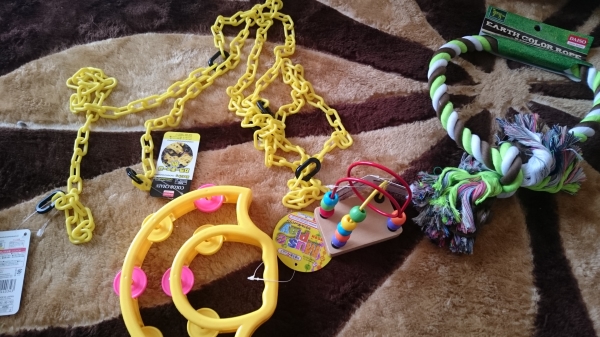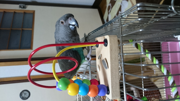 写真のおもちゃは丸みとカラフルさが、いかにもインコちゃん好きチョイスですが、ゆうちゃん、あおちゃん遊んでくれたのでしょうか?