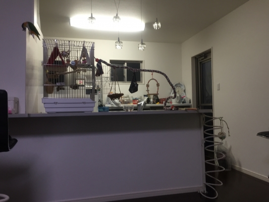 初めから羽切せずに飛んでいますが、4畳半(鳥部屋)と6畳(居間)を合わせた狭い空間を器用に飛んでいます。朝は3〜4周くらい、オカメちゃんがヤンチャ盛りのセキセイ君に追いかけ回されて、カーチェイス(フライトチェイスかな?)してます。
