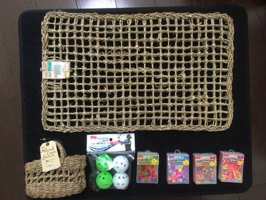 100円ショップ行って来ました‼︎近所のダ◯ソーには無くて、家から少し離れた大きな店舗にいったら、穴開きボールありました‼︎