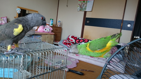 怒りん坊でも籠から出すと手ごねインコで甘えたさんで