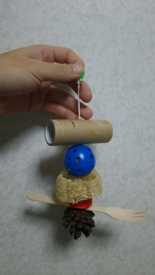 私は籠ににおもちゃを二、三日同じの吊るしてるけど