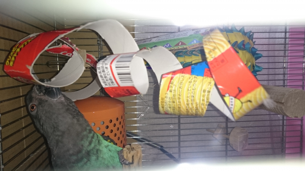 フランは天気の良い日の朝は、放鳥の時に窓越しの朝日を沢山浴びて、ケージに戻ったら速攻水入れでバシャバシャ始めます(^_^)