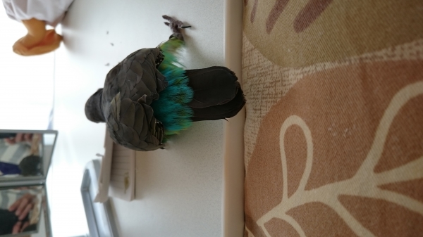 この子は尾っぽの付け根を触ると必ずその仕草をするみたいに首を尾に垂れて、その部分の羽も柔らかくて